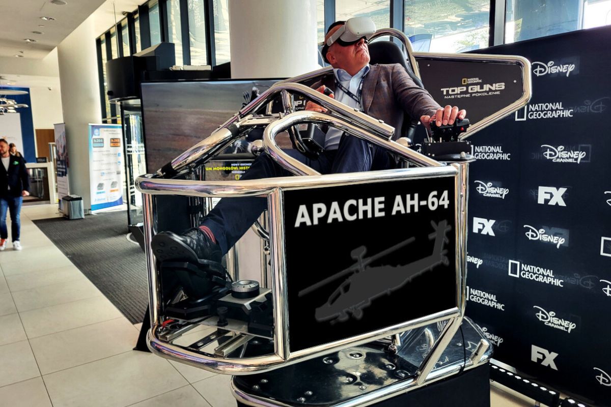 Symulator lotu VR umożliwia podziwianie wirtualnej panoramy Warszawy.